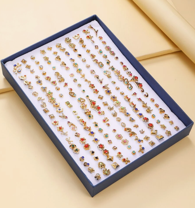 Discover the joy of mixing and matching with this adorable set of 100 rhinestone stud earrings 💖 From sweet hearts and stars to elegant gems and playful shapes — there’s a perfect pair for every mood, every outfit, every day.