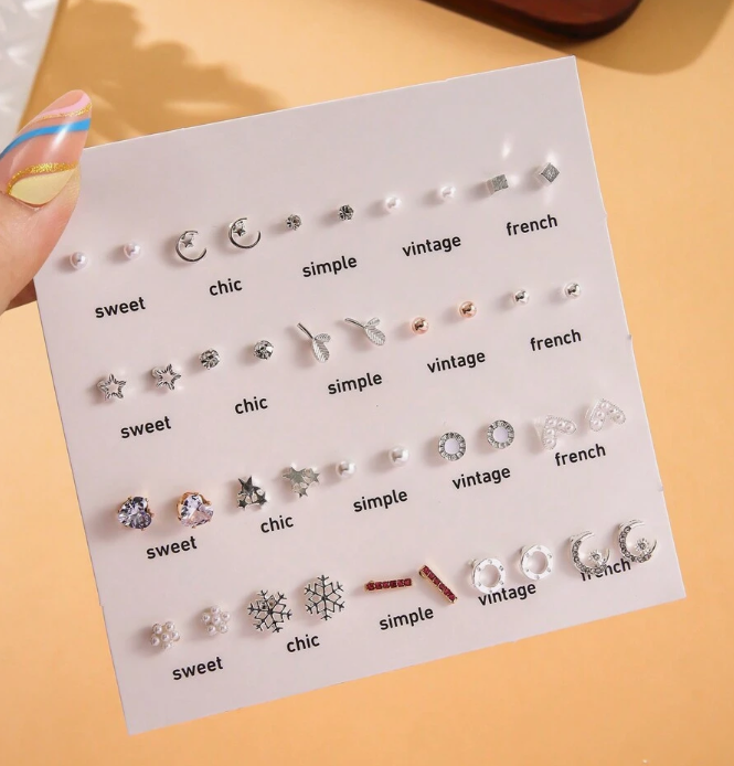 Elegant, minimal, and effortlessly stylish โœจ This versatile stud earring set features a beautiful mix of delicate crystals, stars, moons, florals, and geometric designs โ€” perfect for creating both everyday and dressy looks. Lightweight and comfortable, theyโ€™re ideal for mixing, matching, and stacking to suit your personal style ๐Ÿ’Ž๐ŸŒ™