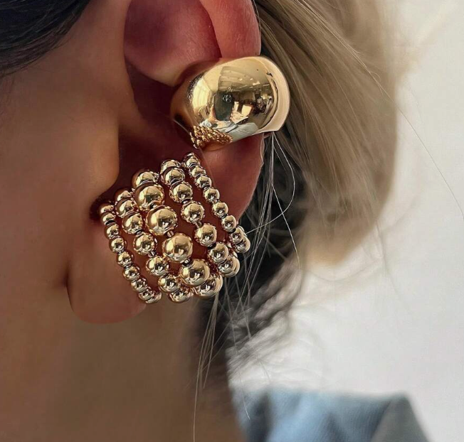 Turn heads with these bold, exaggerated clip-on earrings designed to make a statement. Featuring a high-shine gold finish and a dramatic textured drop, they bring instant glamour and runway-inspired edge to any outfit.