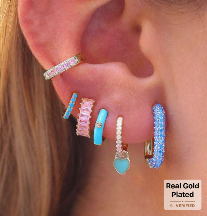 Playful, vibrant, and full of personality 💙✨ This stunning hoop earring set features a mix of colorful enamel finishes, sparkling crystals, and charming details that create the perfect stacked ear look. Designed to be lightweight yet eye-catching, each piece adds a fun pop of color while still feeling chic and feminine 💕