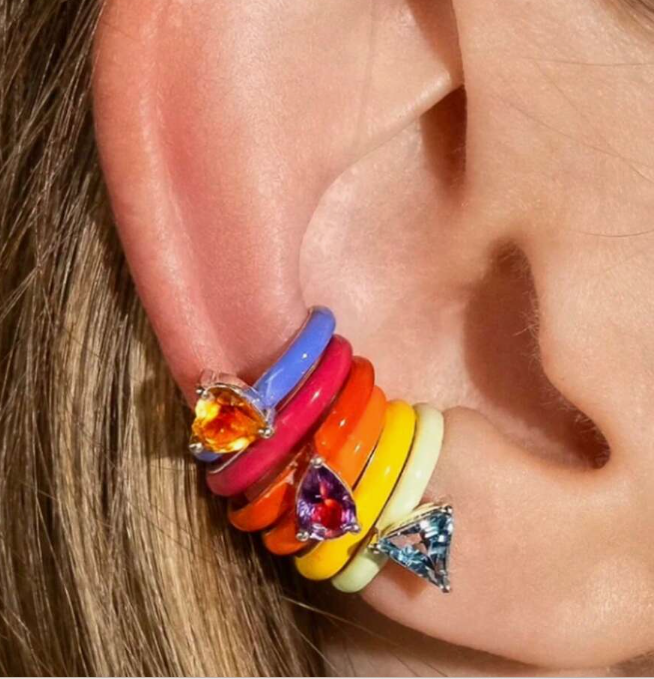 This 6-piece rainbow ear cuff set brings bold color and playful edge to your look — no piercing needed. Featuring stacked enamel bands in vibrant shades with sparkling gem accents, these clips add instant attitude and fun to any outfit. Perfect for festivals, parties, or turning a simple look into a statement. Mix, match, and stack for your own unique vibe.