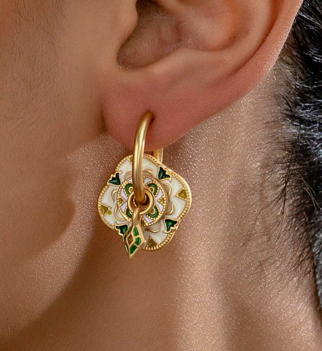 Copper Colorful Enamel Clover Hoop Earring (10 Sets)Copper Colorful Enamel Clover Hoop Earring (10 Sets)