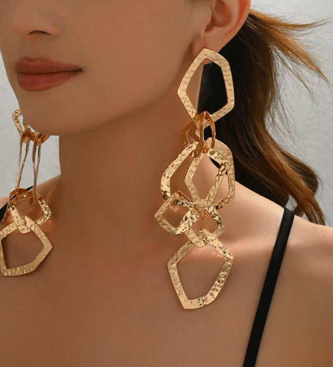 Make a bold statement with these European & American Exaggerated Geometric Drop Earrings. Designed with a creative asymmetrical structure, the layered polygon shapes create a modern, artistic silhouette that instantly elevates any outfit.