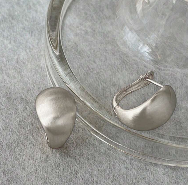 Softly sculpted with an organic curve, these brushed gold and silver huggie earrings bring effortless elegance to any look. Their smooth, fluid shape adds a modern yet timeless touch, while the satin finish creates a warm, refined glow.
