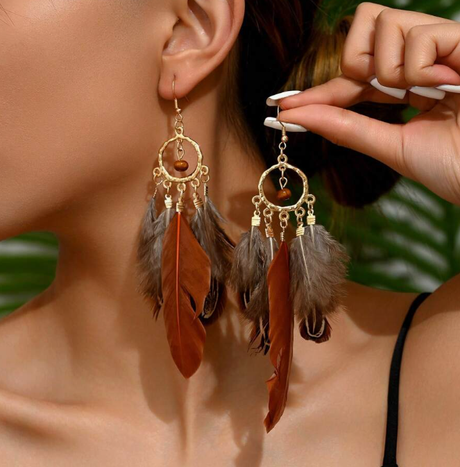 Whether you’re dressing up a simple top or completing a free-spirited ensemble, these retro-inspired feather earrings bring personality, elegance, and a touch of wanderlust to your accessory collection.