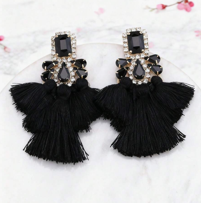 Eye-catching, colorful, and unapologetically glamorous — these boho rhinestone tassel earrings are made to turn heads.