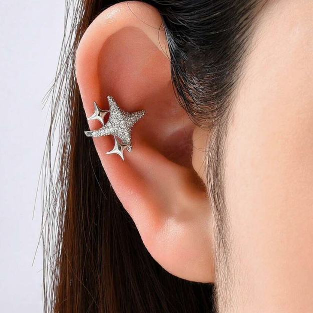 Shine bright with this sparkling star ear cuff, featuring shimmering zirconia stones in a sleek silver-tone finish. Designed to hug the ear comfortably with no piercing required, it adds a dreamy, celestial touch to any look.